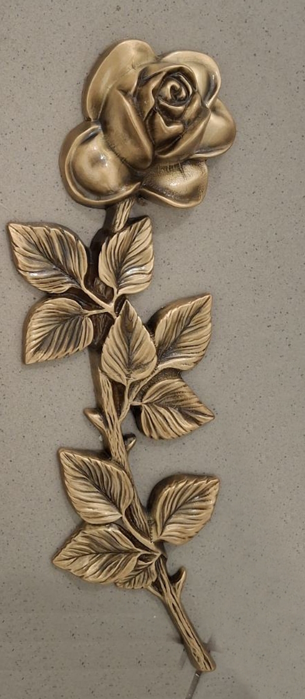 Универсальный вариант розы для декоративного оформления памятника мужчине, женщине, бабушке, дедушке, ребенку. Размер 29см будет хорошо смотреться на стеле 100*50 см в диагональном положении, либо вертикальном. При размере стелы от 120*60 см можно расположить несколько таких цветов иммитируя букет.