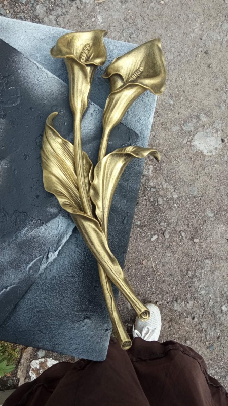 Накладні кали моделі DN-006 чудово доповнять будь-яку меморіальну композицію, при цьому мають ряд переваг перед мармуровими або металевими аксесуарами. Такі квіти можна розмістити на стелі, постаменті чи надгробній плиті. Кали виготовлені з композиції полімерної смоли та мармурової крихти. Наші дизайнери з радістю допоможуть визначитися з дизайном пам'ятника та розміщенням квітів на пам'ятнику. Розмір - 450х190 мм, Маса - 1 кг /strong>